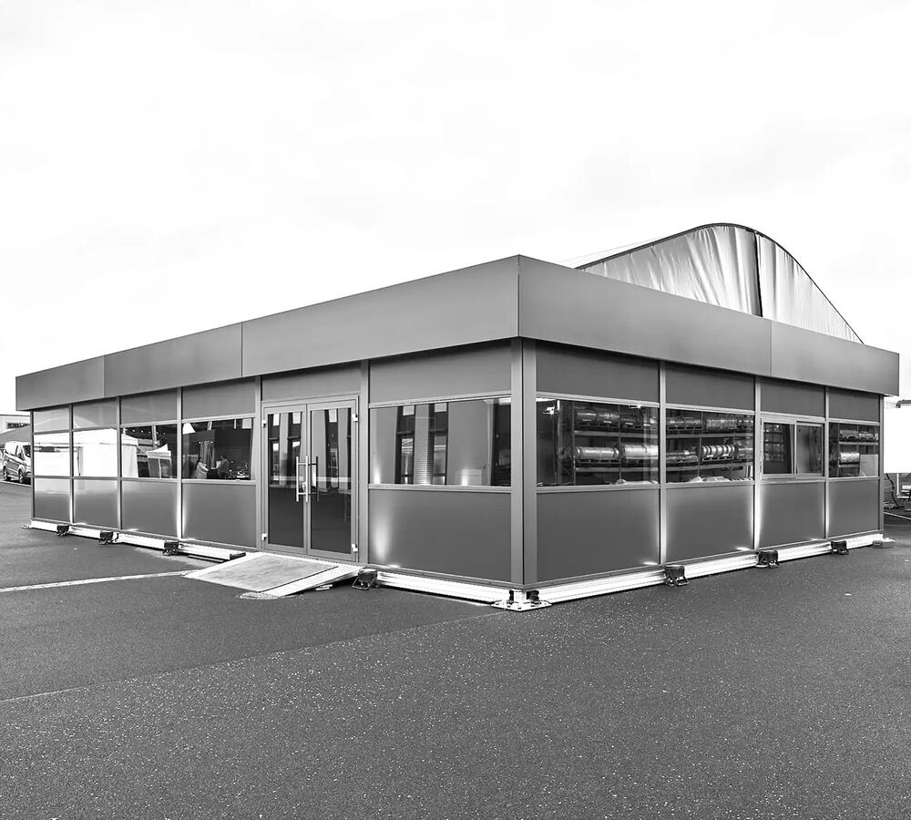 Mit unseren temporären Leichtbauhallen schaffen wir Unterkünfte, Sanitäreinrichtungen, Aufenthaltsräume und Mensen, Küchen, Spülküchen und Kühlmöglichkeiten